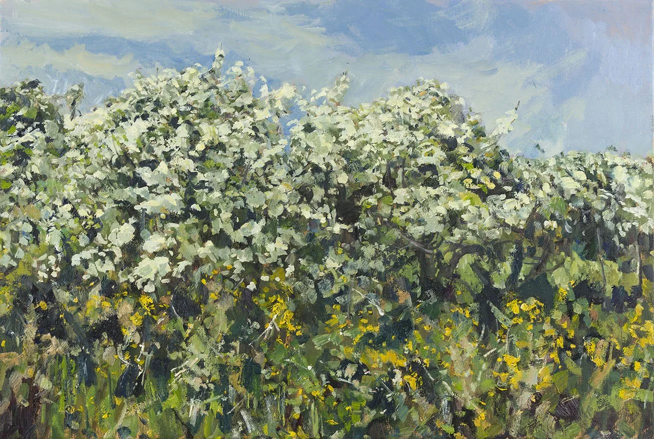 Apple Blossom at Haddon Copse Farm - oil on board 11 "x 14"